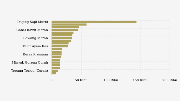Rata-rata harga beras premium secara nasional di kisaran Rp 14.950 per kilogram pada hari ini, Kamis (4/1), sedangkan harga beras medium di kisaran Rp 13.165 per kg.