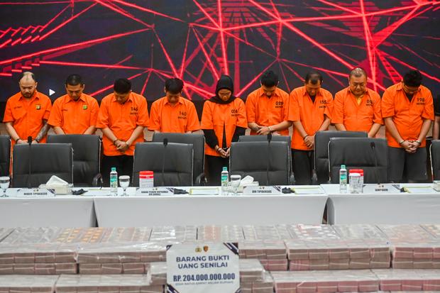 Polisi menyita barang bukti berupa 22 unit ponsel, satu hard disk, dua DVR CCTV, satu unit mini PC, satu notebook, serta uang Rp 204 miliar.