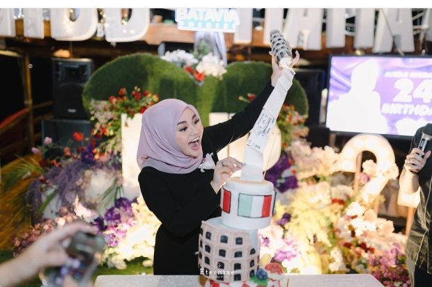 Kue ulang tahun Aurel terlihat terdiri dari lima tingkat. Di dalam kue tersebut, tampak ada sebuah tiket perjalanan untuk Aurel dan Ameena. Krisdayanti menuliskan caption ‘Italia’ yang kemungkinan Atta memberikan hadiah perjalanan ke negara tersebut.