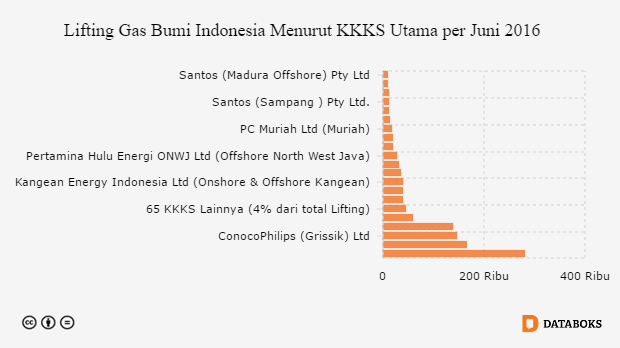 Lifting Gas Bumi Indonesia Menurut KKKS Utama per Juni 2016
