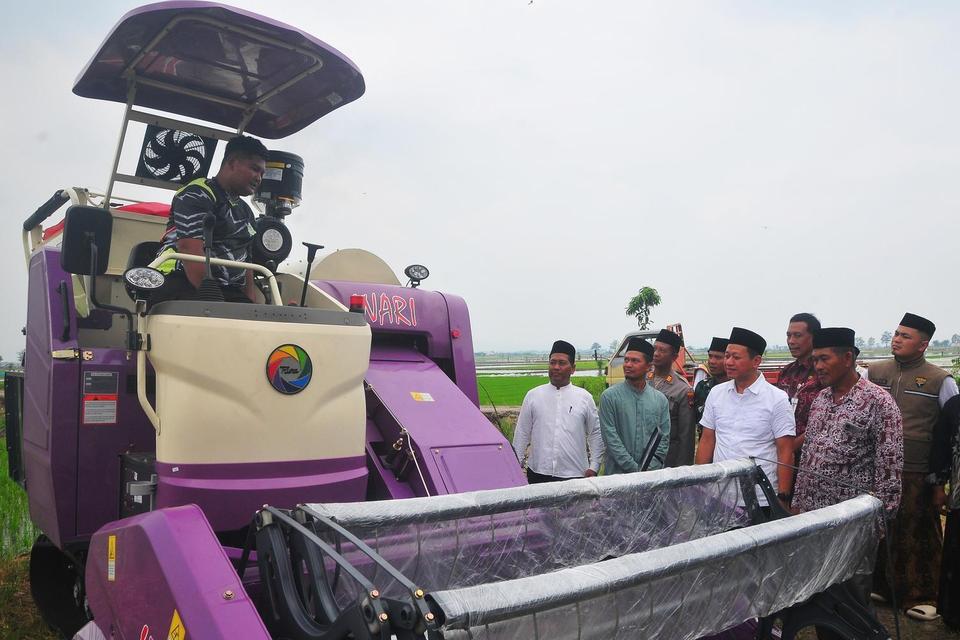 “Kalau dibajak pakai sapi waktunya terlalu panjang. Kalau waktunya panjang makanya kadang-kadang nanamnya setahun cuman 1 kali. Kalau panen secara manual dengan sabit itu 1 hektare butuh beberapa hari, ini dengan alat combine harvester, 1 hektare bisa dikerjakan dalam 2 jam,” ujarnya,.