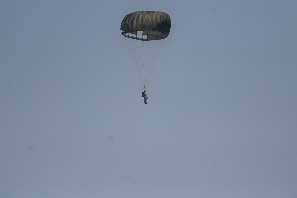 Prajurit Detasemen Intai Para Amfibi 1 (Taifib) Marinir Praka Zaenal Mutaqim gugur saat terjun payung di perairan Teluk Jakarta, menjelang Hari Ulang Tahun (HUT) Ke-80 TNI.