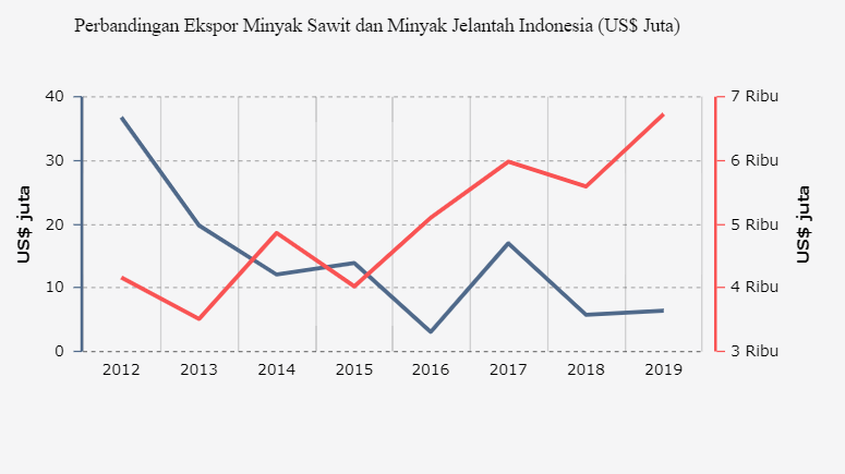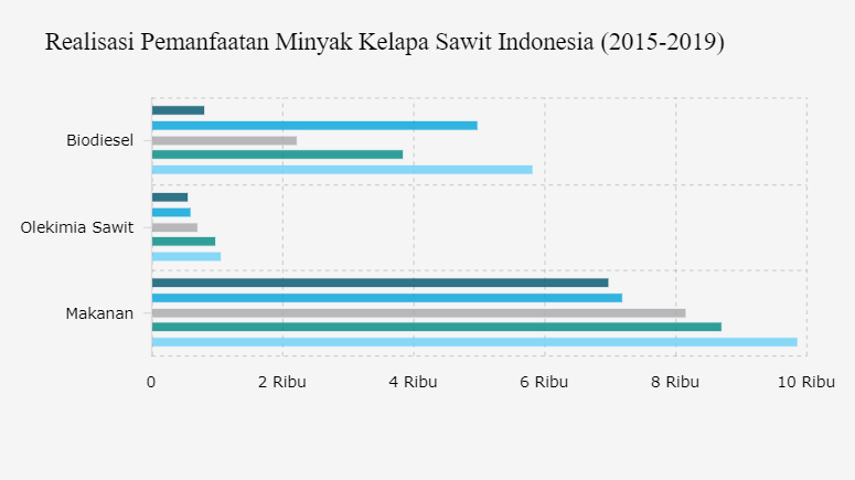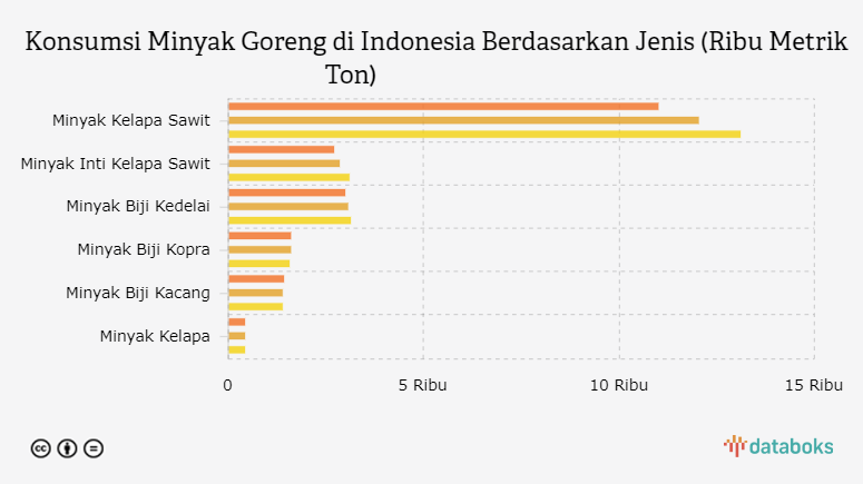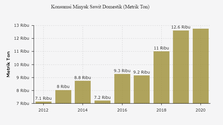 Data dari Global Agricultural Information Network USDA 2019 menunjukkan konsumsi minyak kelapa sawit paling banyak mencapai 13.110 ribu metrik ton pada 2019