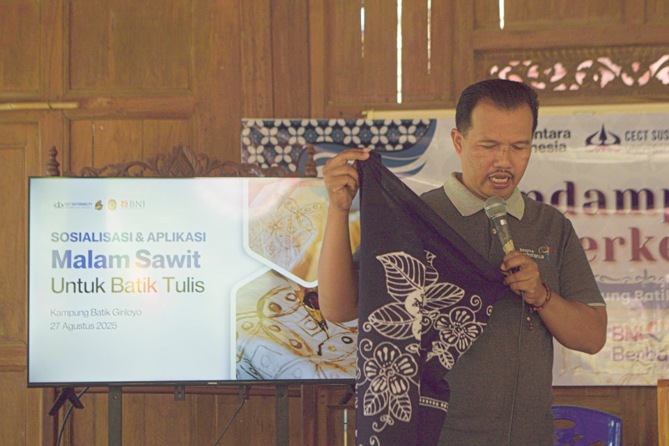 PT Bank Negara Indonesia (Persero) Tbk atau BNI memperkenalkan bahan baku alternatif yang ramah lingkungan, malam sawit berbasis stearin, kepada perajin batik di Kampung Batik Giriloyo, Bantul, Daerah Istimewa Yogyakarta.