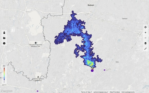 Bantargebang tercatat sebagai lokasi pembuangan sampah dengan “semburan” gas metana terbesar kedua di dunia. Ini berdasarkan laporan tim riset dari Emmett Institute di University of California Los Angeles (UCLA), merujuk pada data Carbon Mapper yang berasal dari satelit milik Planet Labs dan stasiun ruang angkasa NASA.