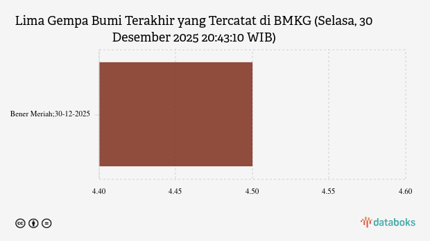 Gempa Hari Ini Selasa, 30 Desember 2025 Guncang Bener Meriah -