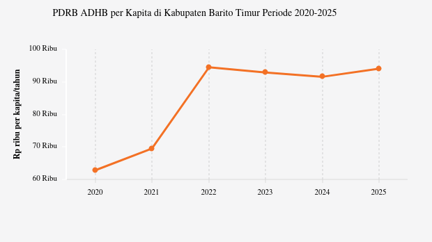 PDRB ADHB per Kapita Kabupaten Barito Timur Rp.94,05 Juta Data per 2025 -