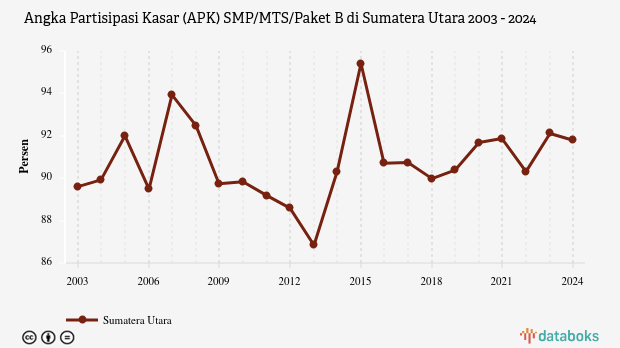 Angka Partisipasi Kasar (APK) SMP/MTS/Paket B di Sumatera Utara | 2024 -