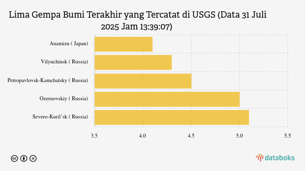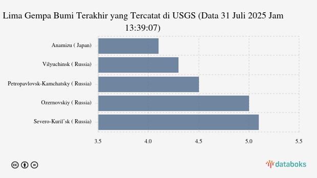 Lima Gempa Bumi Terakhir yang Tercatat di USGS (Data 31 Juli 2025 Jam 11:59:57)