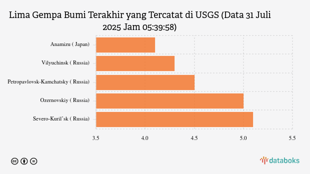 Lima Gempa Bumi Terakhir yang Tercatat di USGS (Data 10 Agustus 2025 Jam 09:29:13) -