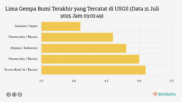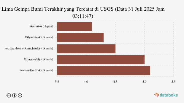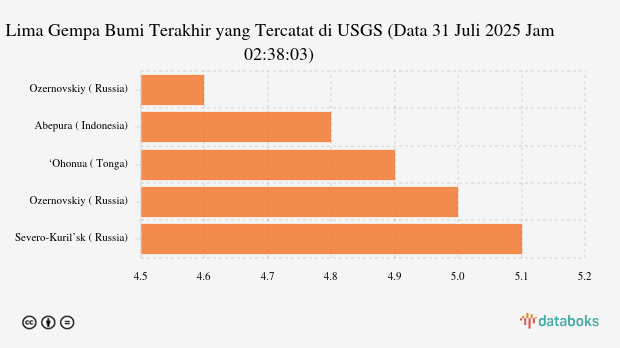 Lima Gempa Bumi Terakhir yang Tercatat di USGS (Data 05 Agustus 2025 Jam 02:16:49) -