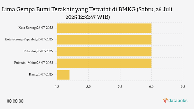 Gempa Terkini 6 M (Magnitudo) Guncang Wilayah Kota Sorong Papua Barat -