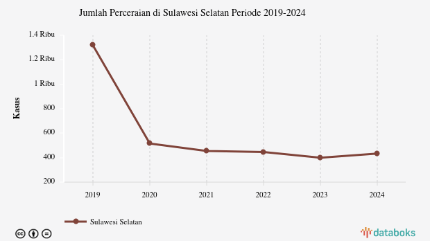 Jumlah Perceraian di Sulawesi Selatan Periode 2019-2024 -