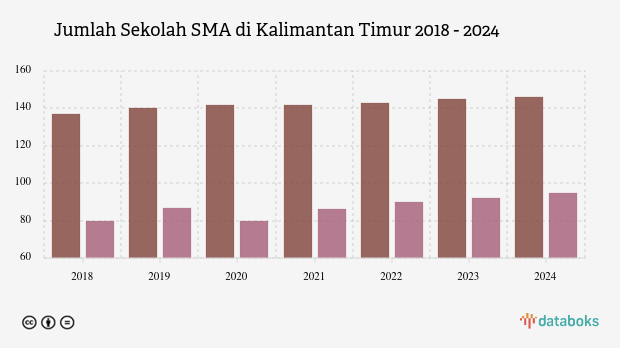Jumlah Sekolah SMA di Kalimantan Timur 2018 - 2024 -