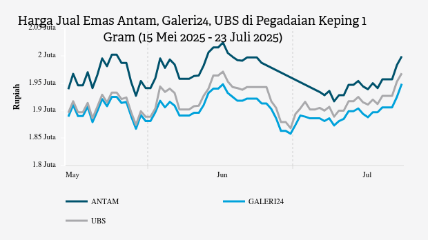 Harga Emas Hari Ini 23 Juli 2025 di Pegadaian, Galeri24 Naik Rp24.000 per Gram -