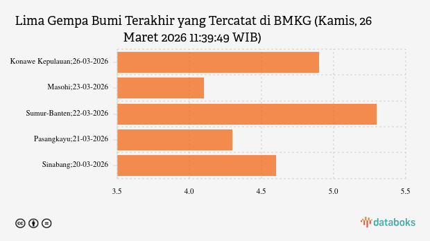 Lima Gempa Bumi Terakhir yang Tercatat di BMKG (Kamis, 26 Maret 2026 11:39:49 WIB) -