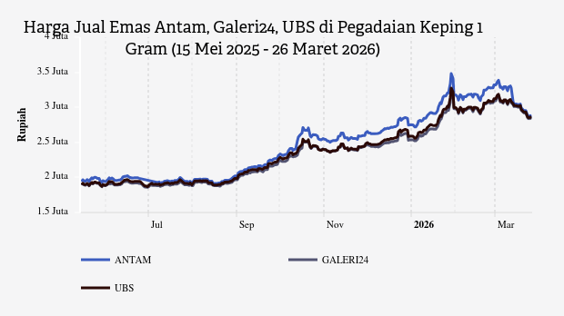 Harga Emas Hari Ini Antam di Pegadaian Rp2.860.000 per Gram (26 Maret 2026) -