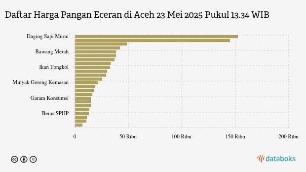 Harga Pangan Jumat (23/5) Wilayah Aceh: Daging Sapi Naik, Cabai Rawit Turun -