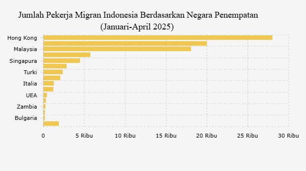 Daftar Negara Tujuan Pekerja Migran Indonesia pada April 2025