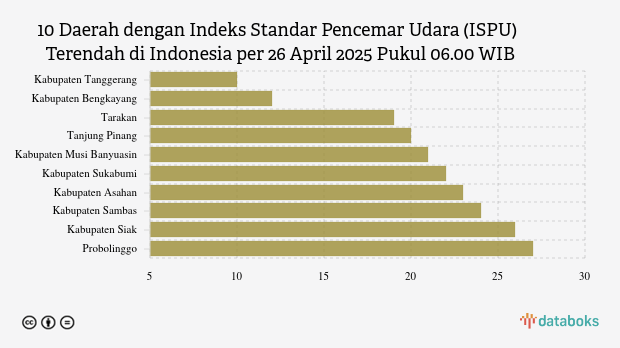 Kualitas Udara Kabupaten Tanggerang Paling Bersih di Indonesia Pagi Ini (26/4) -
