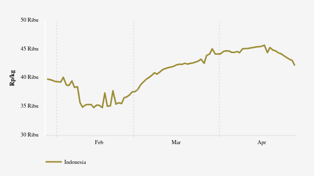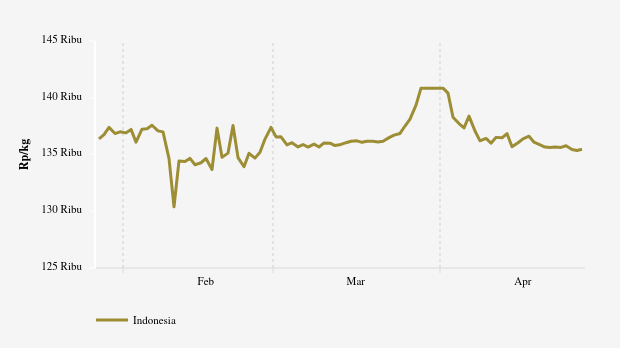 Harga Gula Nasional Tiga Bulan Terakhir Naik 0,77% -