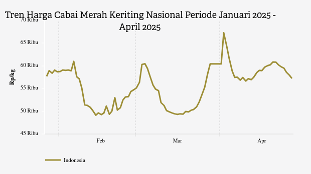Harga Cabai Merah Nasional Sebulan Terakhir Turun Rp3.193 -