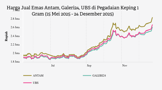 Harga Emas Hari Ini Antam di Pegadaian Rp2.845.000 per Gram (24 Desember 2025) -