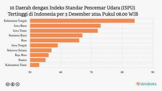 Kualitas Udara Kalimantan Tengah Selasa Pagi (3/12) Terburuk di Indonesia -