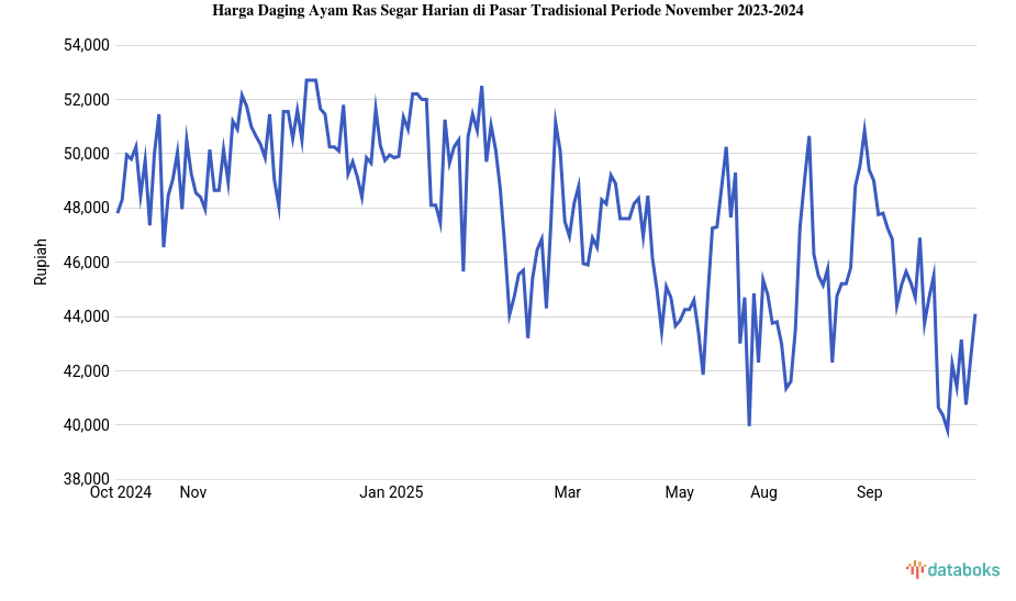 Harga Daging Ayam Ras Segar di Pasar Tradisional Periode Oktober 2024-2025 -