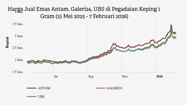 Harga Emas Hari Ini 7 Februari 2026 di Pegadaian, Antam Naik Rp41.000 per Gram -