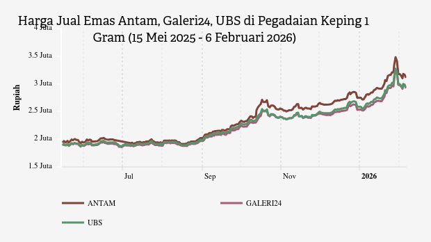 Harga Emas Hari Ini Antam di Pegadaian Rp3.110.000 per Gram (6 Februari 2026) -
