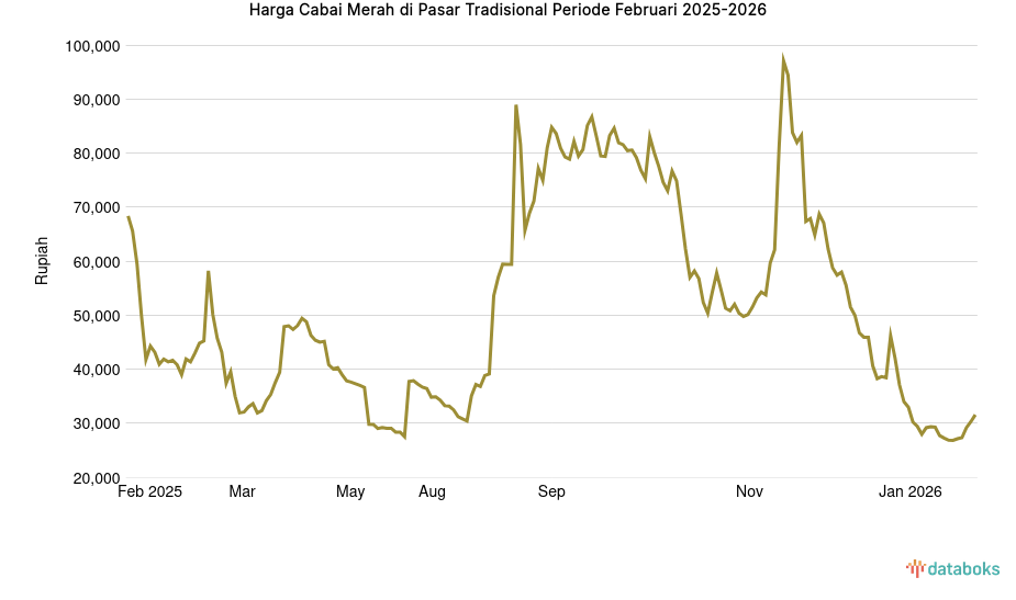 Harga Cabai Merah di Pasar Tradisional Provinsi Sumatera Utara Sebulan Terakhir Turun 45,56% -