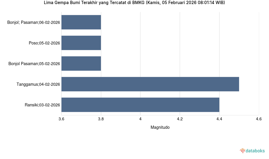 Info Gempa Kamis, 05 Februari 2026 di Poso 3,8 M, Tak Berpotensi Tsunami