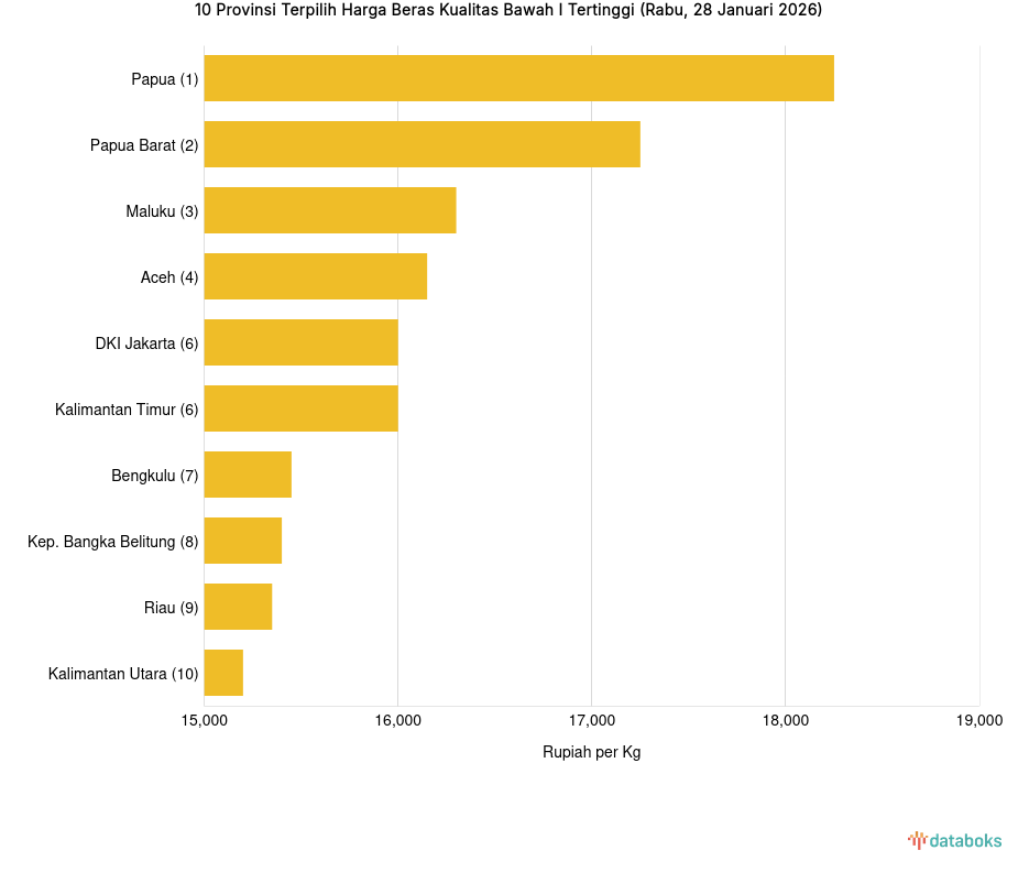 10 Provinsi dengan Harga Beras Kualitas Bawah I Paling Mahal (Rabu, 28 Januari 2026) -