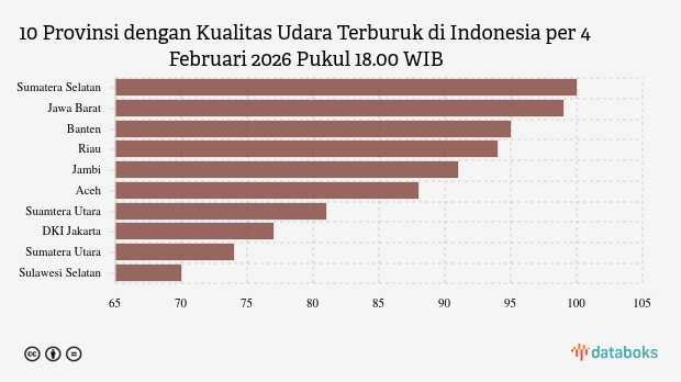 Kualitas Udara Sumatera Selatan Malam Hari (4/2) Terburuk di Indonesia -
