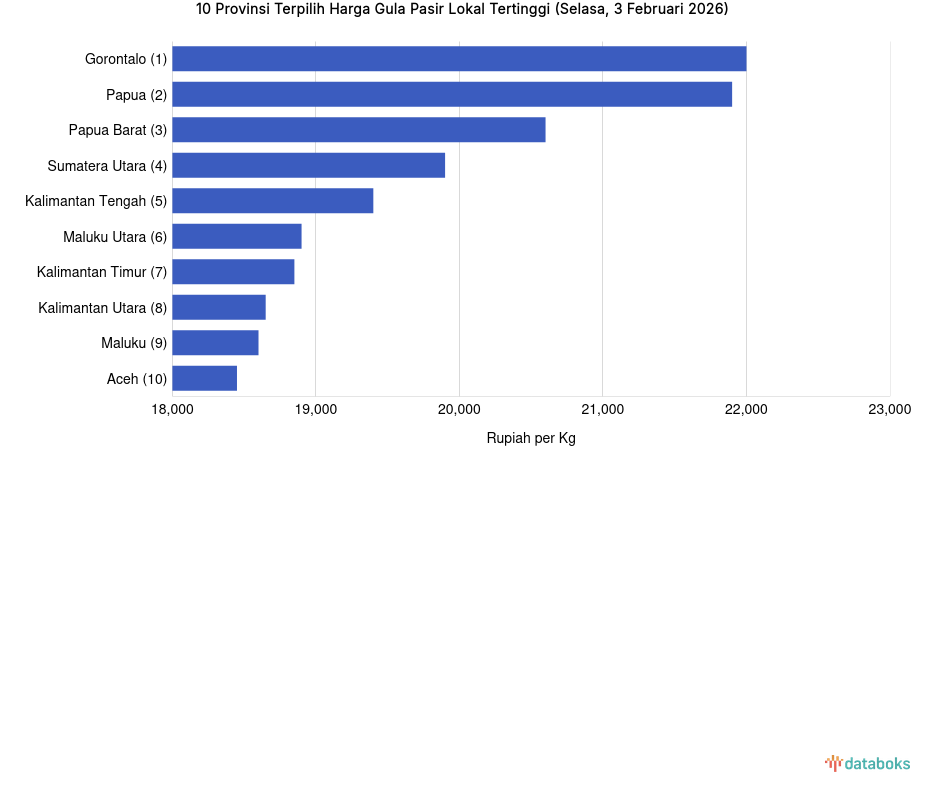 10 Provinsi dengan Harga Gula Pasir Lokal Paling Mahal (Selasa, 3 Februari 2026) -