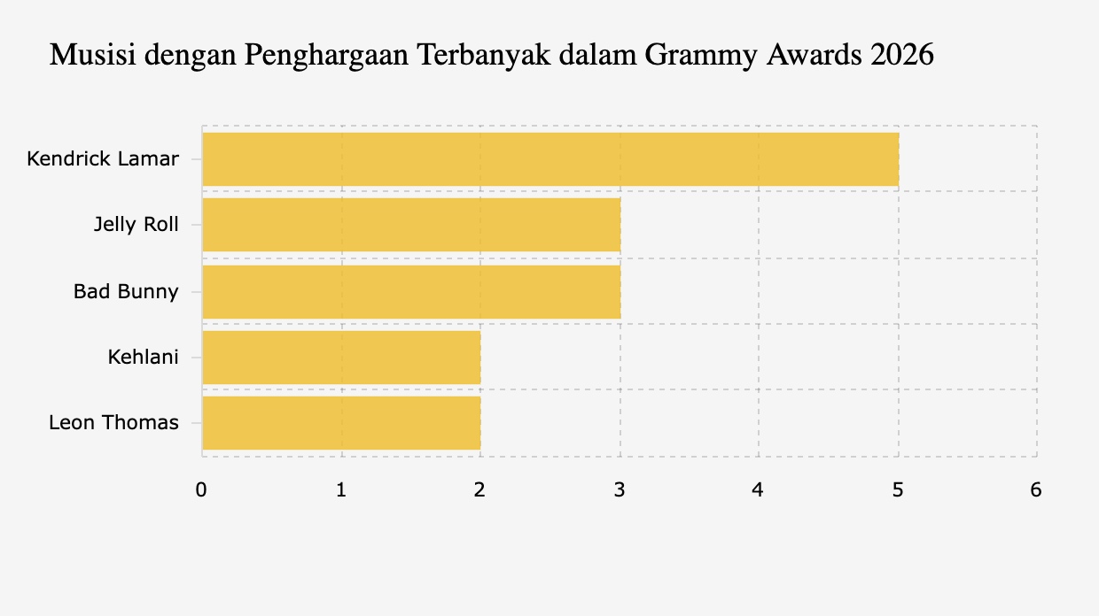 Kendrick Lamar Raih Piala Terbanyak di Grammy Awards 2026 -