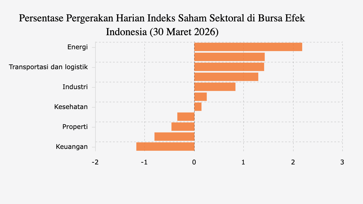 7 Sektor Saham Naik, Energi Memimpin (Senin, 30 Maret 2026) -