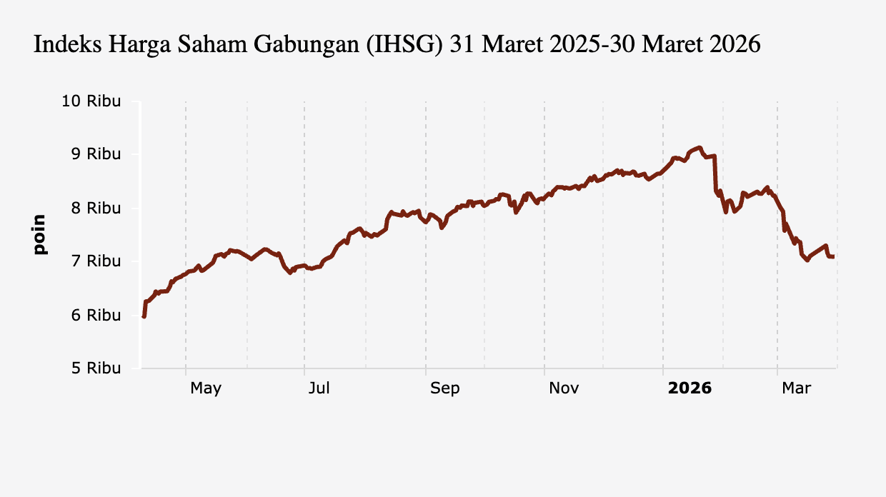 IHSG Ditutup Melemah 0,08% (Senin, 30 Maret 2026) -