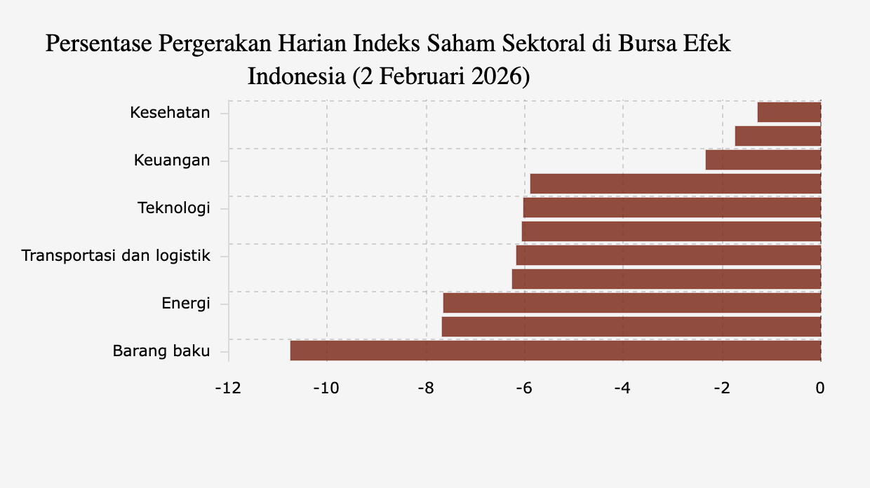 Semua Sektor Saham Turun, Barang Baku Anjlok 10% Lebih (Senin, 2 Februari 2026) -