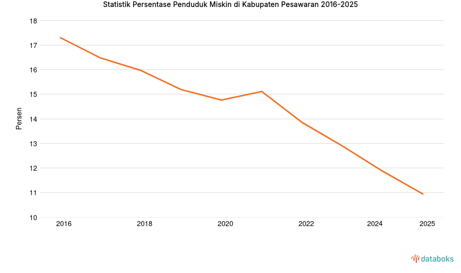 Statistik Persentase Penduduk Miskin di Kabupaten Pesawaran 2016-2025 -