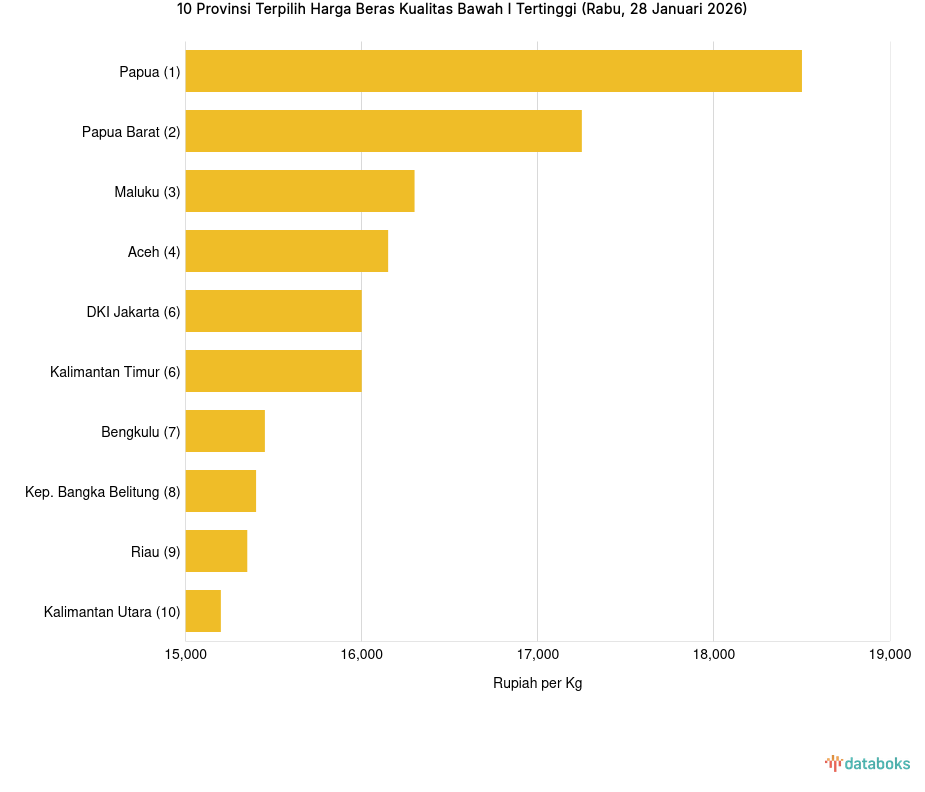 Harga Beras Kualitas Bawah I di 10 Provinsi Ini Paling Mahal (Rabu, 28 Januari 2026) -