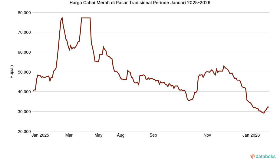 Harga Cabai Merah di Pasar Tradisional Provinsi Sulawesi Tenggara Sebulan Terakhir Turun 34,35% -