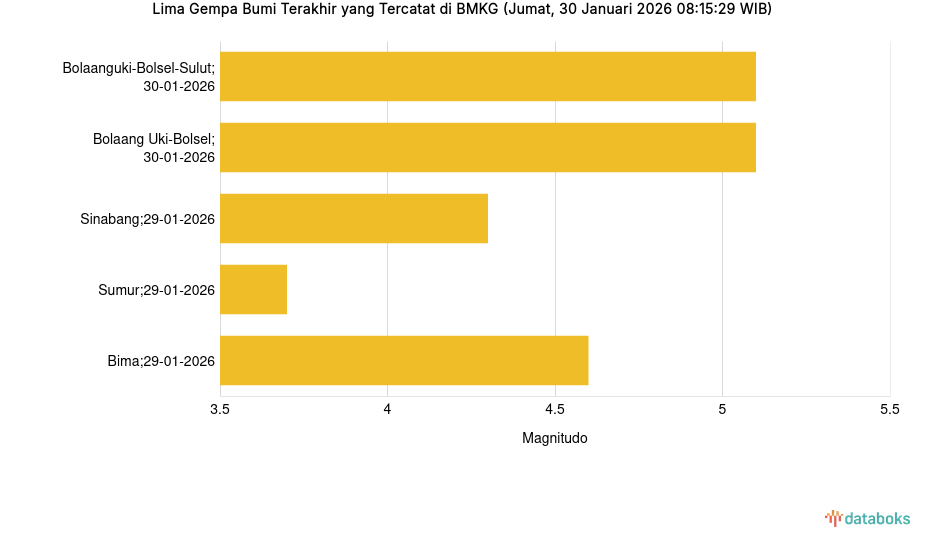 Lima Gempa Bumi Terakhir yang Tercatat di BMKG (Jumat, 30 Januari 2026 08:15:29 WIB) -