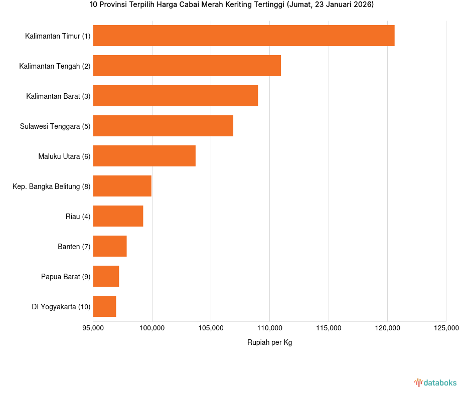 Harga Cabai Merah Keriting di Kalimantan Timur Rp.126,85 Ribu per Kg (Jumat, 23 Januari 2026) -