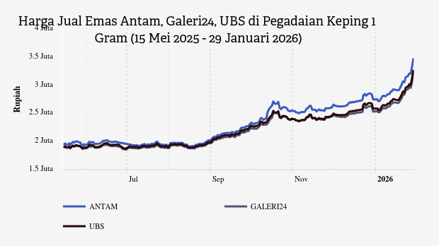 Daftar Harga Emas Hari Ini Antam dan Galeri24 di Pegadaian (29 Januari 2026) -