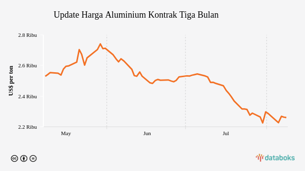 Harga Aluminium Turun Menjadi US$2.260 per Ton per Kamis, 08 Agustus 2024 -
