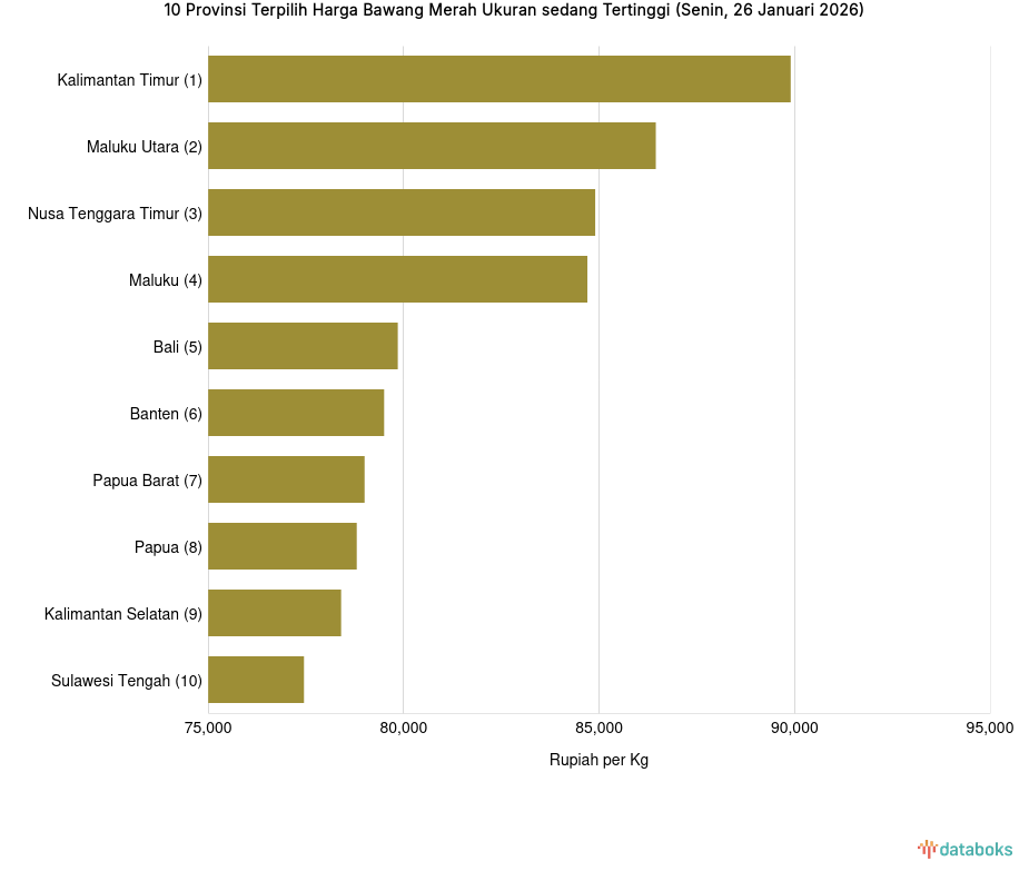 Harga Bawang Merah Ukuran sedang di Kalimantan Timur Rp.89.900 per Kg (Senin, 26 Januari 2026) -