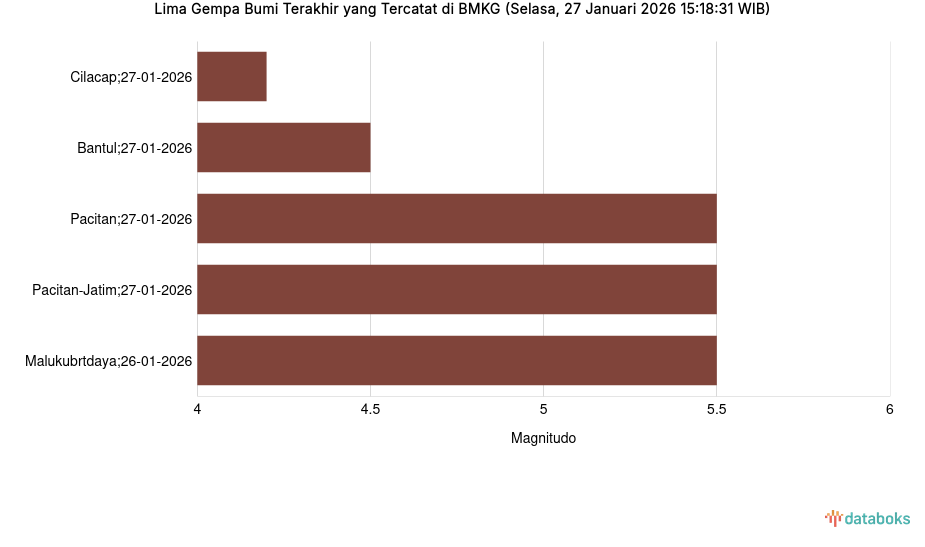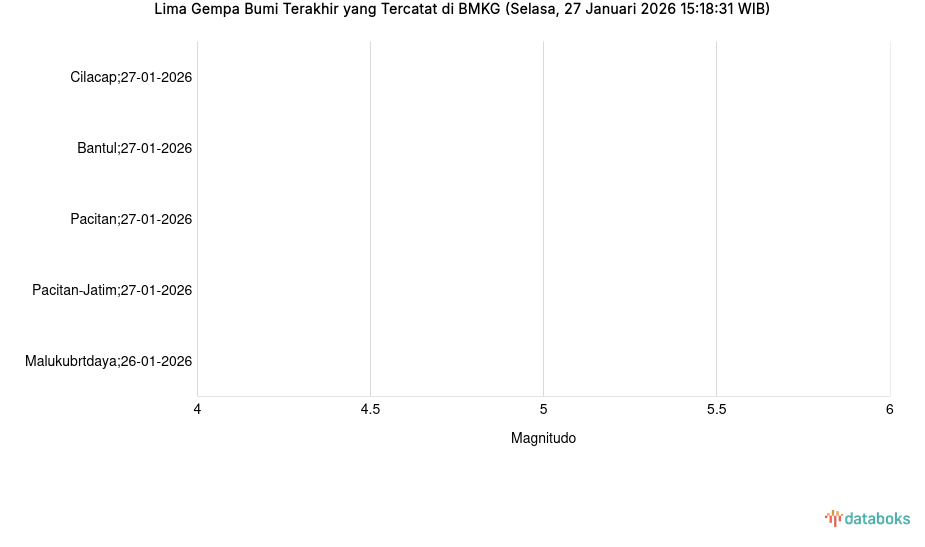 Lima Gempa Bumi Terakhir yang Tercatat di BMKG (Selasa, 27 Januari 2026 15:18:31 WIB)