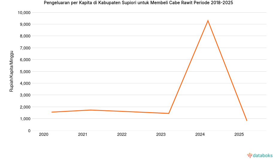 Pengeluaran Penduduk Kabupaten Supiori untuk Membeli Cabe Rawit Rp808 per Kapita per Minggu -
